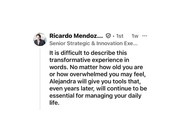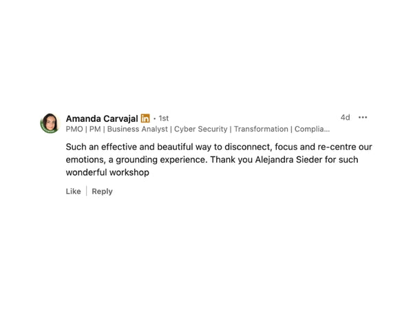 Alejandra’s facilitation style is calm, clear and structured, helping participants feel steady and supported as they learn the method.