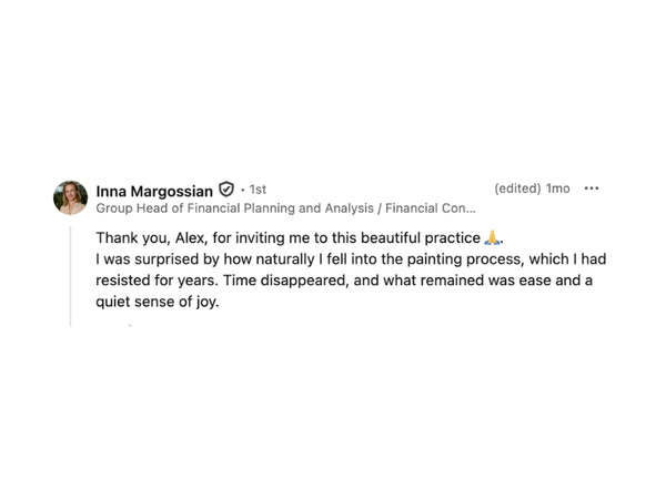 Yes. It becomes a personal anchor for the clarity practice. Also, each participant receives a notebook and a pen brush in a small gift bag to continue using the method anytime, anywhere.